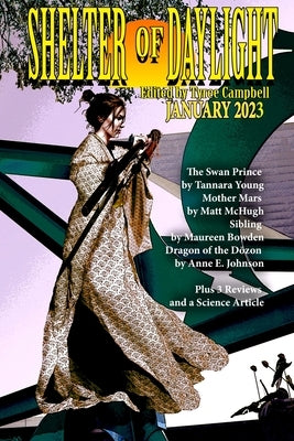 Shelter of Daylight features positive and uplifting science fiction and fantasy. In this issue you'll find a very unlikely means of time travel; a computer who helps a colony evolve; a prince who is a swan and has a destiny; dragons who demand periodic sacrifices; reviews of three books; and much more.